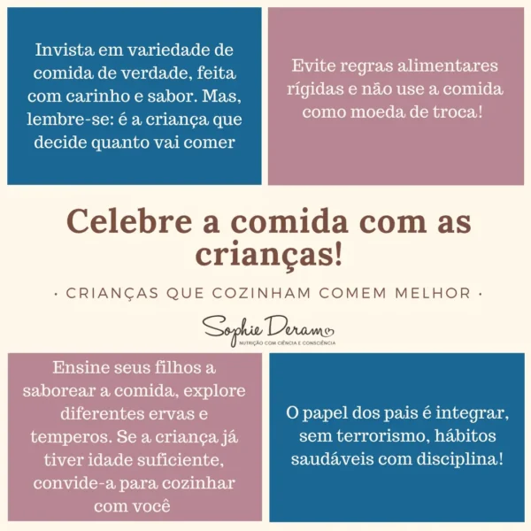 Procure, no lugar disso, reavaliar os hábitos alimentares de toda a família e aproveitar este momento para construir uma relação tranquila com a comida, isto é, o comer normal, como explicado no vídeo abaixo.